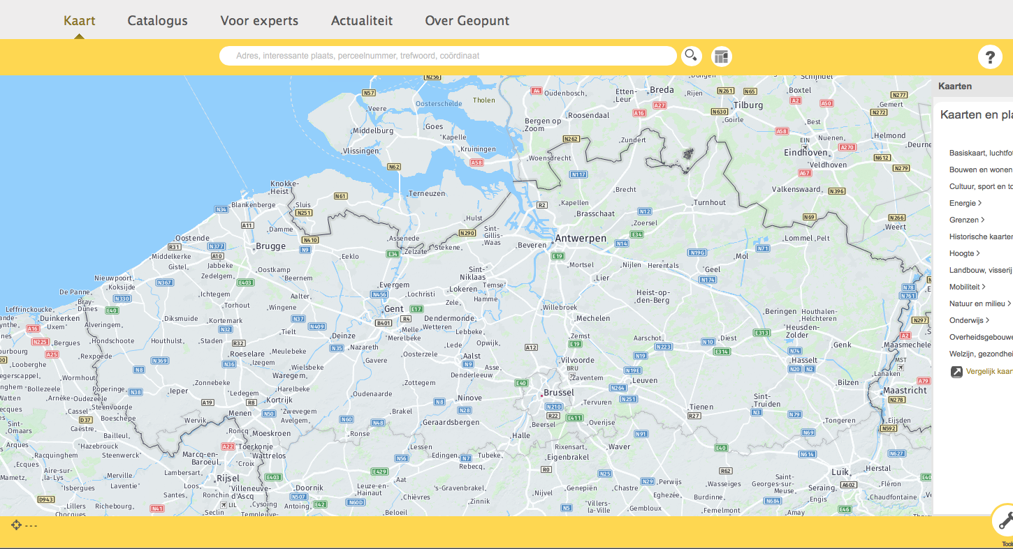 Nog zo’n website is die van Geopunt Vlaanderen, een officiële website van de Vlaamse overheid die geografische informatie toegankelijk maakt voor overheidsinstanties, burgers, organisaties en bedrijven. Het biedt een ruim aanbod aan data, diensten en toepassingen en richt zich naar een breed en divers publiek. Burgers die op zoek zijn naar een bouwgrond kunnen het adres van de grond ingeven en zo onder meer de oppervlakte van de grond, de perceelsgrenzen en de aanwezigheid van overstromingsgebied nagaan.