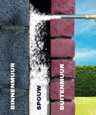 De spouw moet minstens 5 cm breed zijn en de volledige spouwbreedte moet opgevuld worden met het isolatiemateriaal.